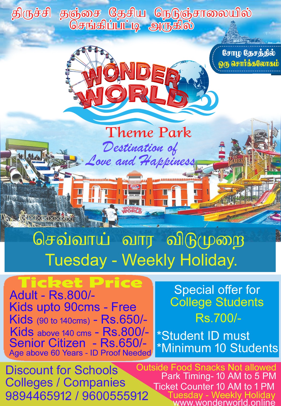 Wonder World Amusement Park in Thanjavur offers Thrilling Rides, Water Attractions, and entertainment for visitors of all ages, making it a popular destination in Tamil Nadu, India.